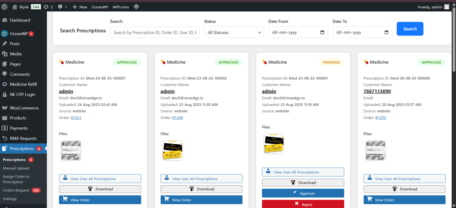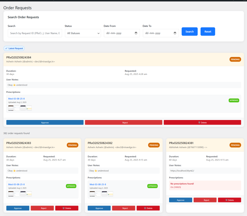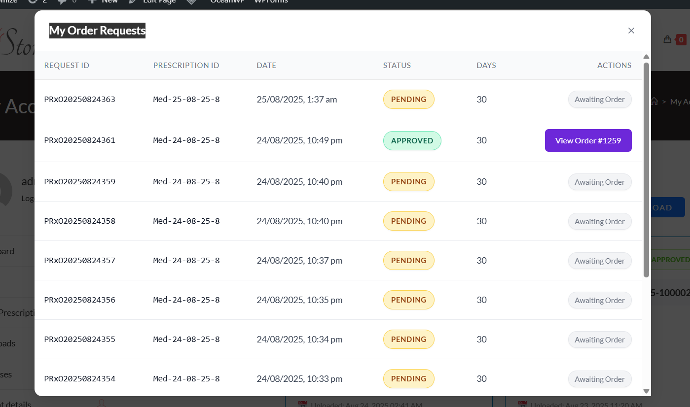 Manage and track all Prescription orders Request in one place