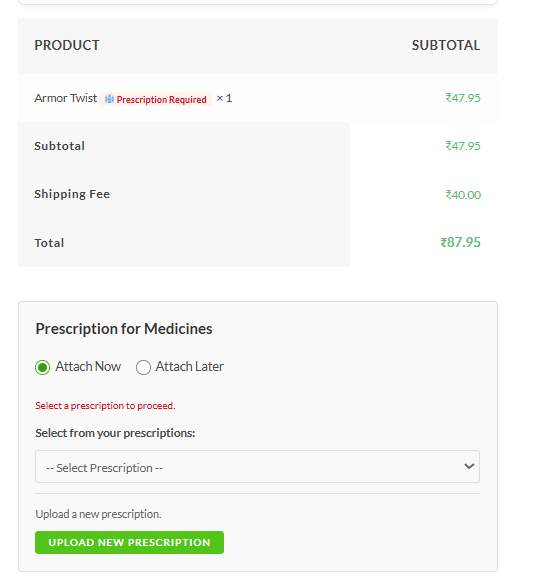 Attach Prescription on checkout for order processing